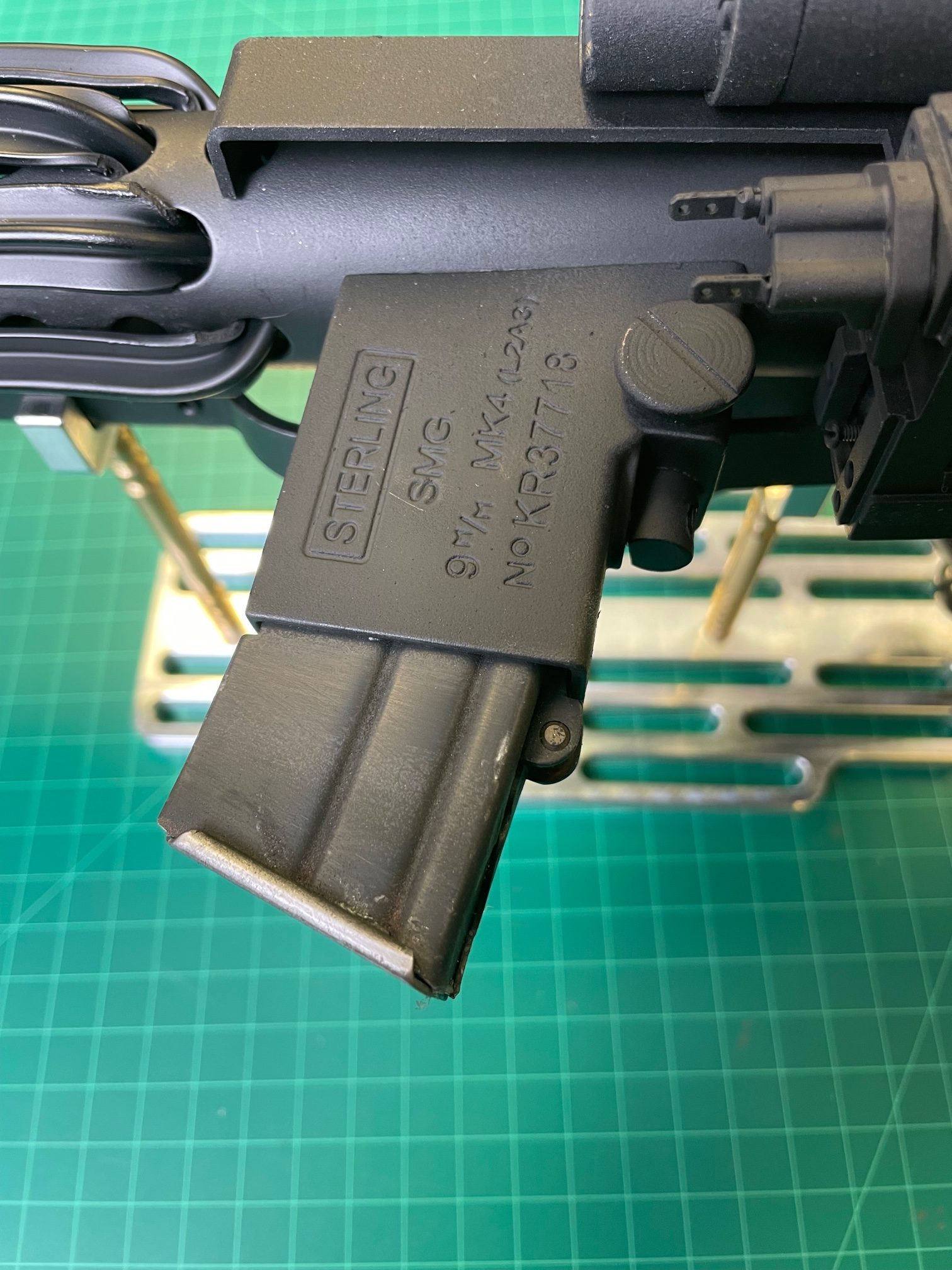 New version kit with mag well stampings and logos…………… PRE PAINTED in unissued condition and ready to display. Stand NOT included.