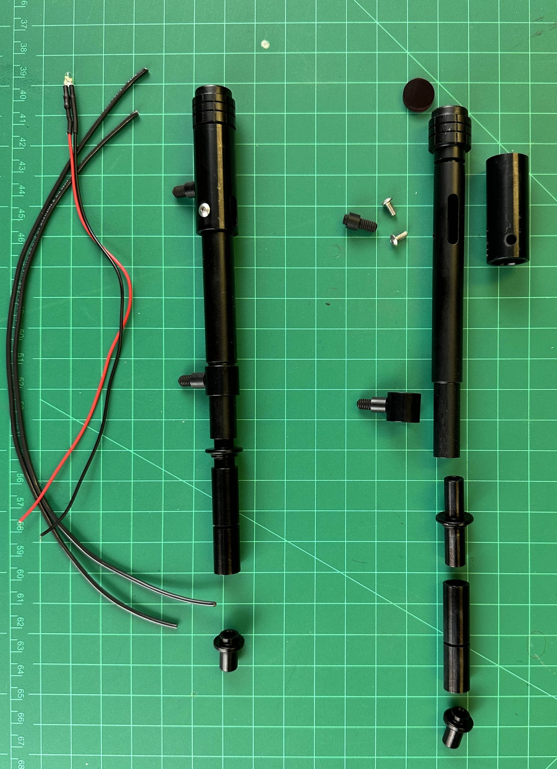 This kit is the Death Trooper E11D RANGE FINDER GREEBLIE. It is reproduced and scaled from screen photos , and full size Death Trooper statue E11d. This counter is cnc machined from solid aluminum . This kit includes the mounting standoffs ,and the necessary mounting screws. Sorry the statues e11d blaster is not included in this auction. Wiring is setup can be used with the BOW TIE Greeblie , and the replica Counter.