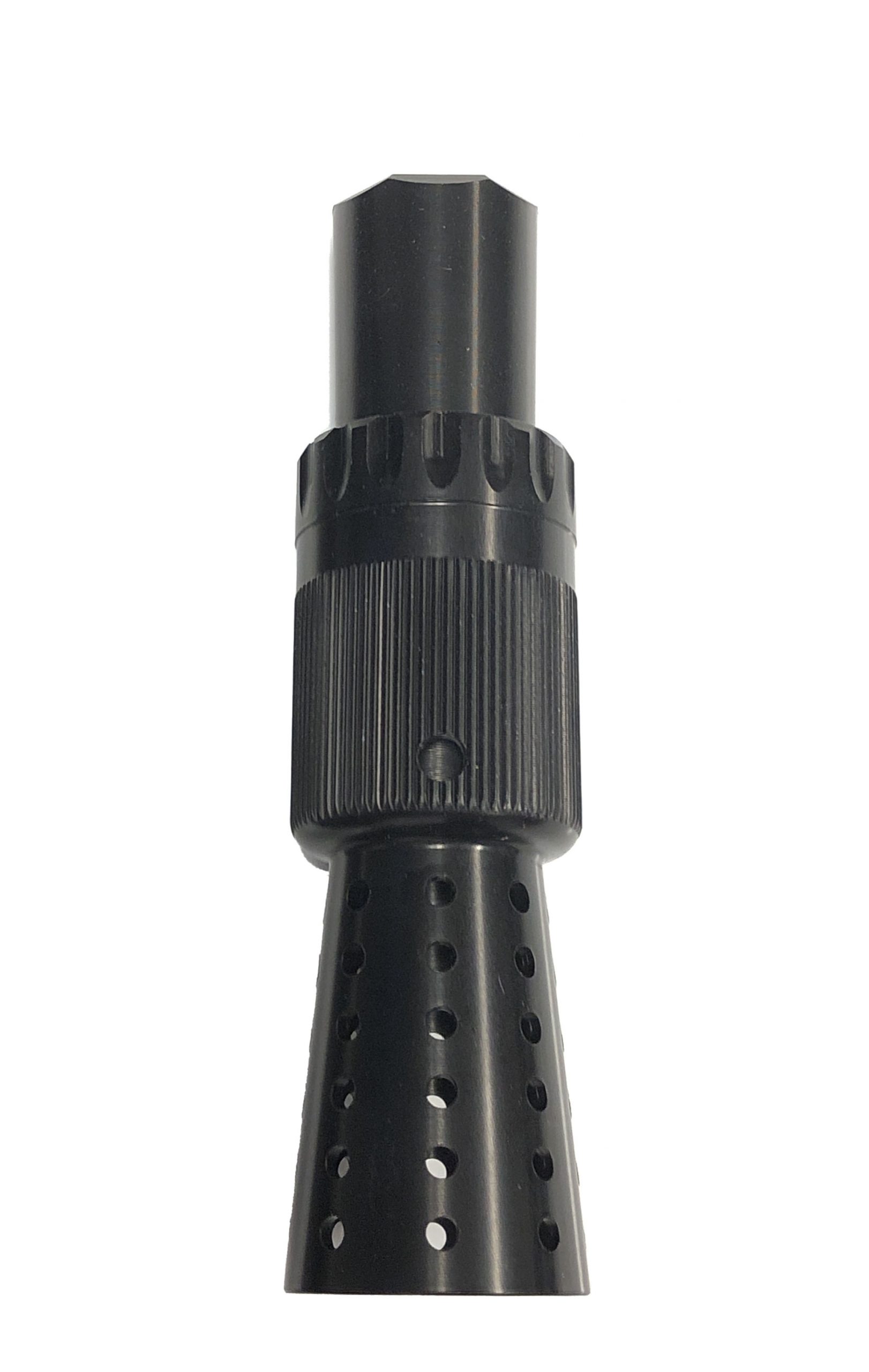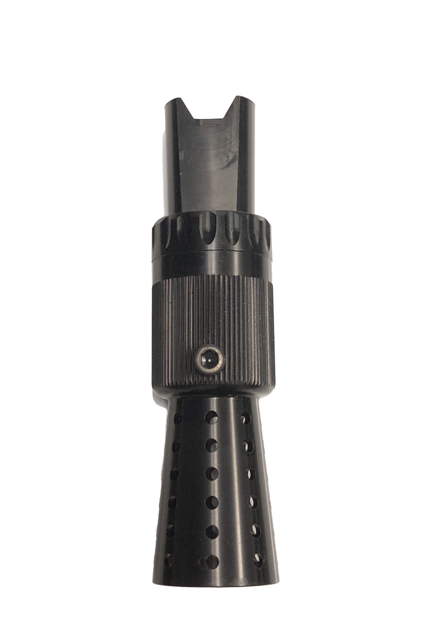 Reproduced from the MG81 flash hider for the anh version DL44 Blaster . Faithfully laser scanned and machined from aluminum to vintage perfection , Black anodized ready to install ..