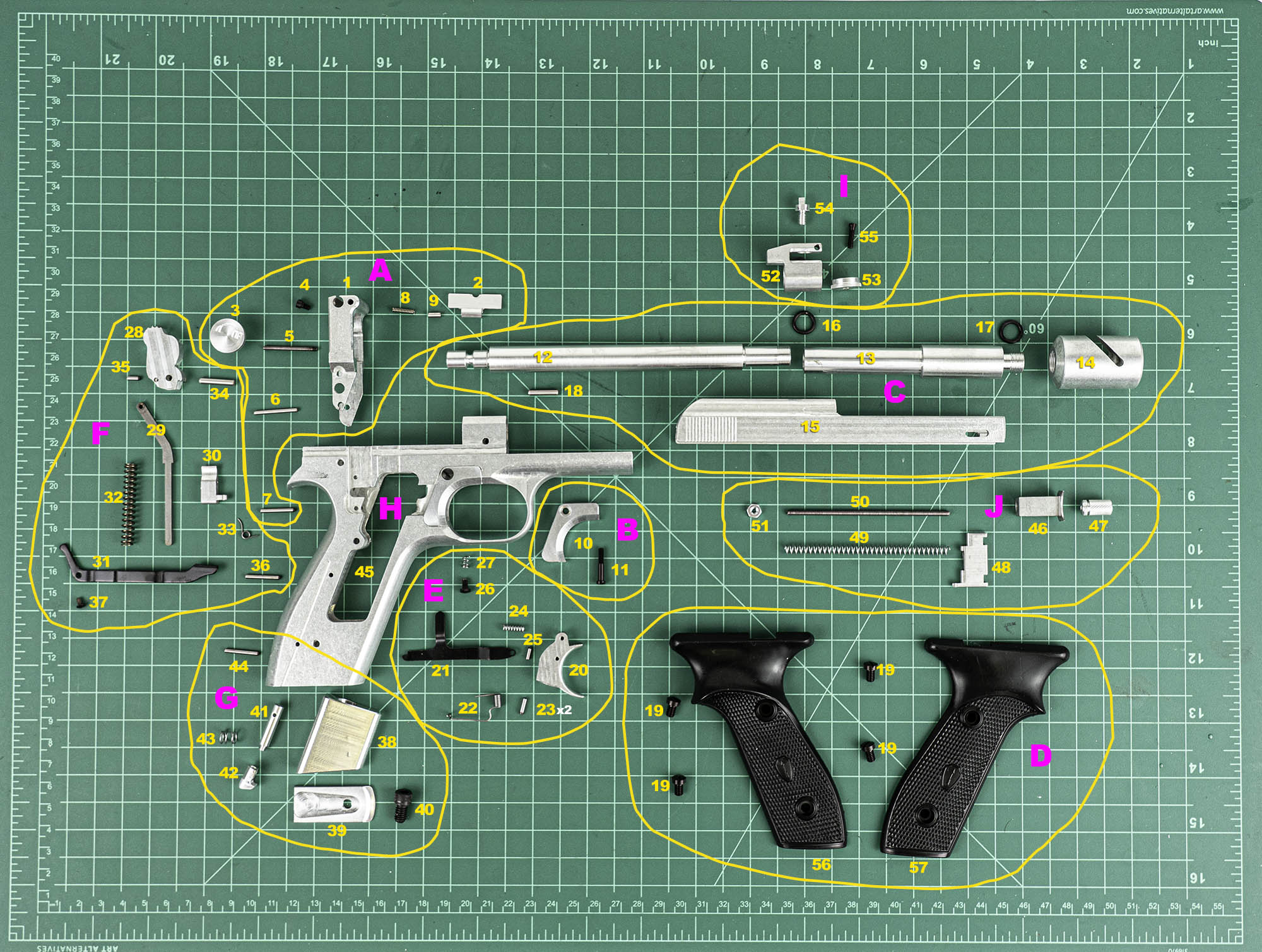 The Princess Defender Kit laser scanned from a vintage Margolin. All details captured in 5 axis CNC machining. Kit includes over 50 parts. Kit also includes front site greeblie, coil, and Reade model cylinder.